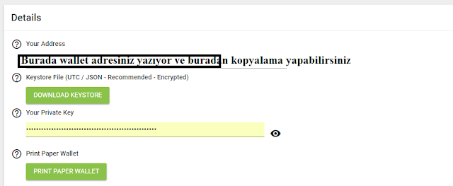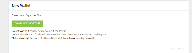 Bu adımda Download Keystore diyerek dosyayı indirin. Bu dosyada wallet adresiniz ve private keyiniz yer almaktadır. Ayrıca bu dosyayı kaybetmeyin ve kimse ile paylaşmayın. İndirme işleminin ardından contıune basın.