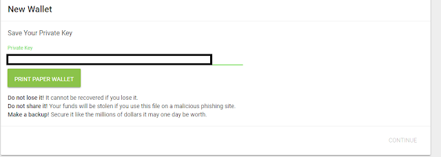 Bu adımda ise sizlere private keyinizi gösteriyor. Bu şifreyi yine bir yere kaydedin ve kimse ile paylaşmayın. Kayıt işleminin ardından contiune tuşuna basın.